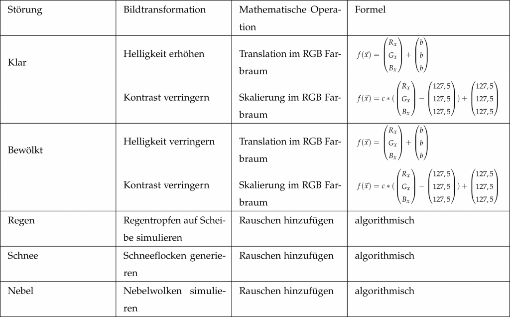 The disturbances contained in such a tree are then simulated, i.e., generated via image modifications, without changing the labels contained in the image. Otherwise, the image material must be relabeled manually. Changes such as inserting and completely covering objects are therefore not useful.
