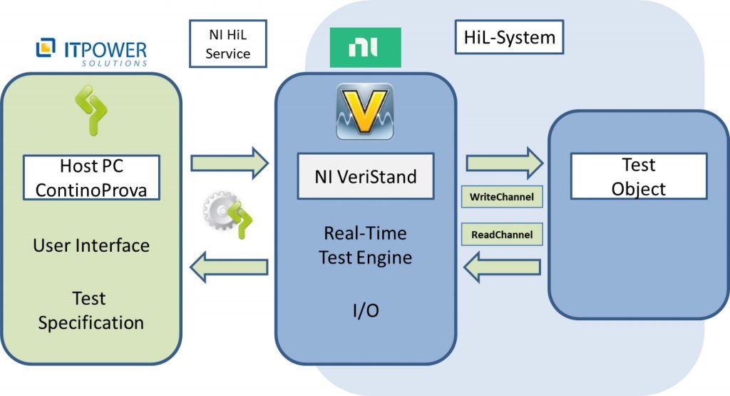 In VeriStand, test specifications can be created using programming and scripting languages. However, this requires the user to have certain programming skills and is relatively time-consuming. In order to provide a simple way to specify test cases for automated execution in a hardware-in-the-loop environment, it is advisable to integrate specialized tools into the test environment. Various tools from different manufacturers are available on the market for this purpose. In-house developments can also perform this function. ITPower Solutions has made its in-house test tool ContinoProva available for use in a HiL environment via a connection to NI VeriStand. The architecture of the tool used is, of course, important for this application.